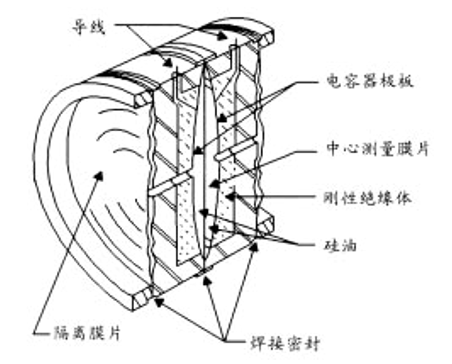 電容式壓力變送器:其測量膜片與兩側固定電極各形成一個電容器,膜片微小的位移導致兩極板間的距離改變,從而引起電容量發生變化。