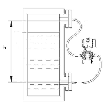 高壓室法蘭與容器高端法蘭相接,低壓室法蘭與容器低端法蘭相接。為避免變送器在測量過程中出現盲區應滿足下列條件:H1-ρ1≥h2·ρ2